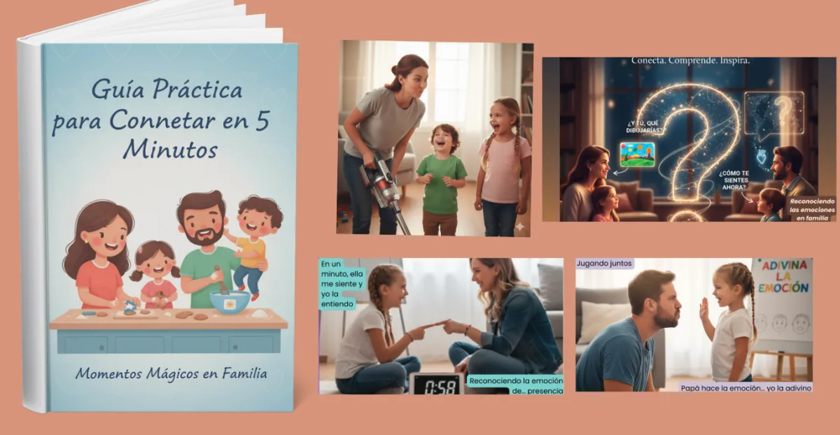 Esta guía práctica te enseña cómo crear momentos de risa, amor y presencia con solo 5 minutos al día. Ideal para padres con niños de 2 a 7 años que buscan reconectar sin pantallas ni estrés.