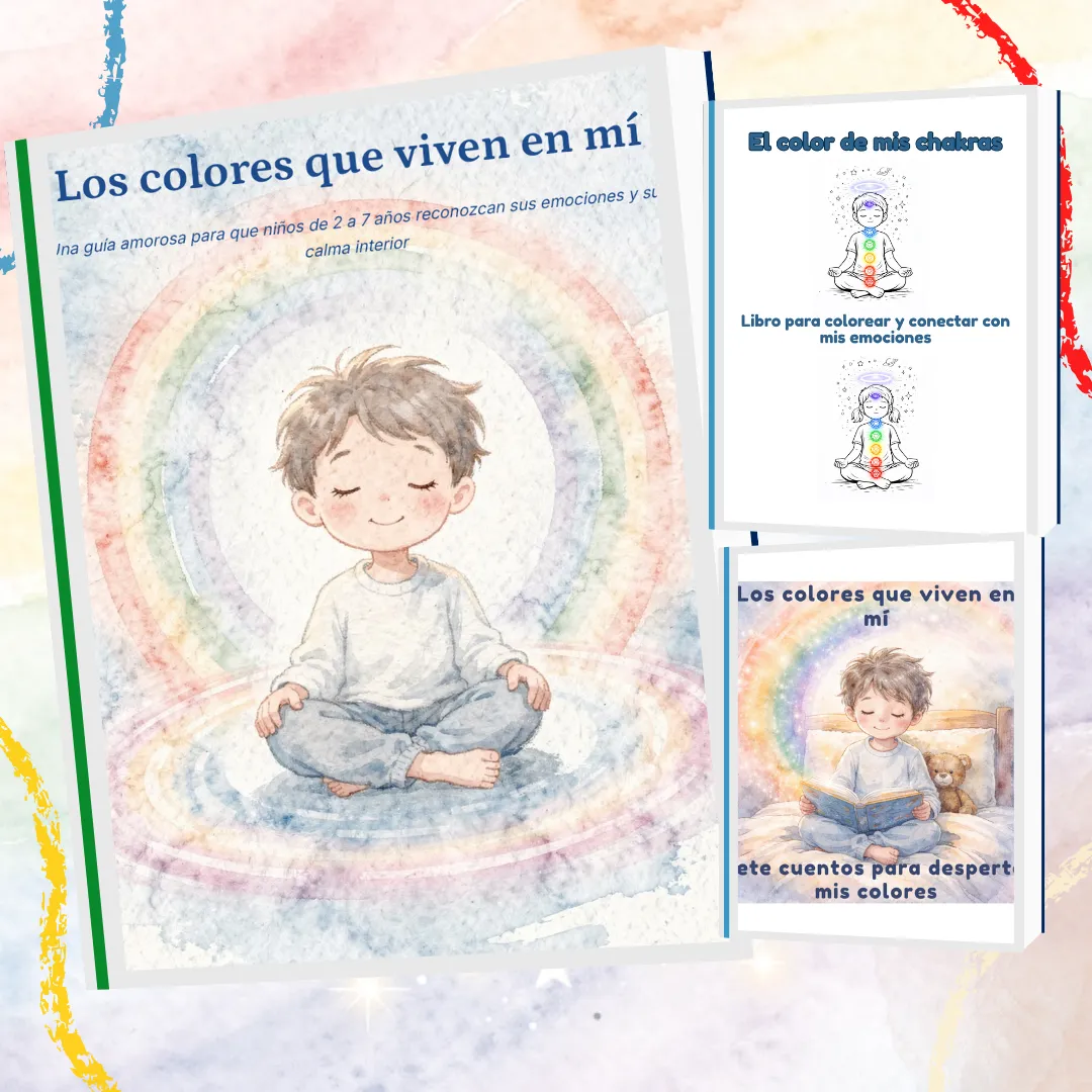 Los colores que viven en mí es un libro digital infantil diseñado para conocer los chakras y acompañar a niños de 2 a 7 años a reconocer sus emociones con calma y amor.